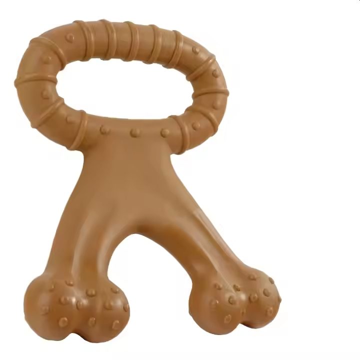 Mordedor en forma de hueso doble, ideal para satisfacer el instinto natural de morder. Textura firme, sabor atractivo y diseño ergonómico